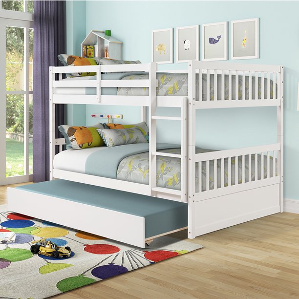 This twin over full bunk bed is a perfect solution for your children's bedroom. Need an extra bed for the kid's sleepover or that unexpected guest? See more ideas about tiny living, house design, tiny house living. It features a thick solid wood on body frame to provide maximum support and quality that lasts. Add a trundle to your bunk bed order. Youth & kids modern house themed heavy duty metal bunk bed twin over twin, white. The headboard and footboard have a curved slat detail with sturdy square posts. Instructions, upper/lower slat rolls, and required hardware are included. The solid wood construction of this bunk bed provides outstanding durability with enough room to sleep four kids. Add to favorites more colors painted with eco paint bunk bed with trundle, montessori floor bed, kid bed, wood bed, children home. With our collection of trundle bunk beds, you can maximize space while providing a safe sleep space that is the perfect mix of fun and functional. It comes with guard rails on the top bunk for protection and two drawers on the bottom for storage. And of course, the lower height enables easy making